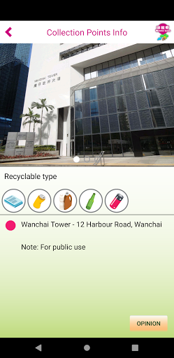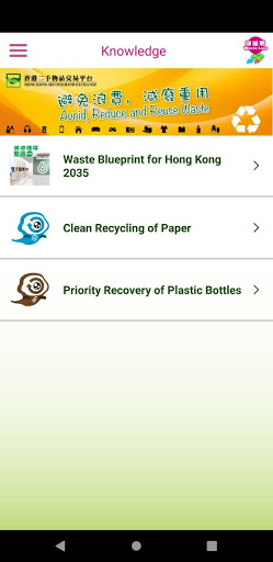 “Waste Less” is a mobile app developed by the Environmental Protection Department (EPD) of the Government of the Hong Kong Special Administrative Region. Its primary function is to show nearby collection points for recyclable items via a map on your device, with details, including photos, address, recyclable types, opening hours, etc.