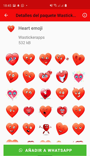 ✔️ Wastickerapps very easy to install , the app has a very practical and simple interface, which allows you to install a pack of stickers very quickly, you just have to access the Wastickerapps pack you want to install, and click on the green button "Add to WhatsApp" located at the bottom of the screen, and ready you can access the love stickers directly from your WhatsApp app.
