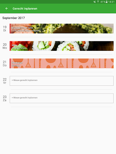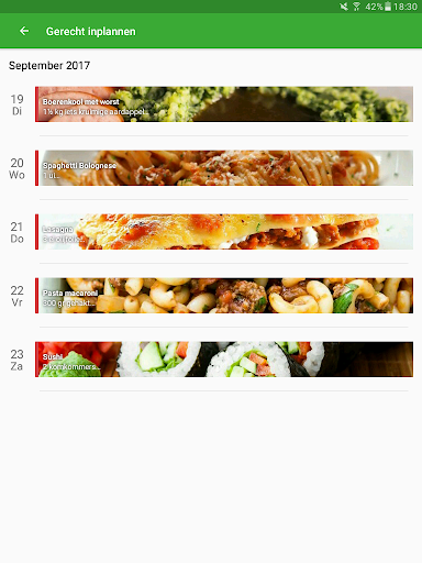 Daarnaast is het mogelijk om een planning voor de komende dagen te maken. Zo kan je voor meerdere avonden bedenken wat je wil eten. Op deze manier wordt bijgehouden wanneer een gerecht voor het laatst is gegeten.