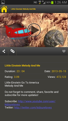 Watch Little Einstein (Full Episodes) is a FREE App for your kids!Download this NEW FREE APP and let your kids watch their favorite cartoon Little Einstein.The best series of Disney Little Einstein in one video application!Watch Disney's Little Einsteine and enjoy!*Please note that this app is not official and all videos are shortcuts to the free videos of youtube DISCLAIMER: The content provided in this application is hosted on YouTube and is available in the public domain. We have not uploaded any videos to YouTube. This application is just an organized way to browse and view YouTube videos in another way. This app is unofficial and is simply a shortcut to the free information offered by youtube.Any problems or suggestions, please contact us.Keywords: kids videos, nursery videos, disney junior, Little Einstein, Little Einstein app,Little Einstein video, best Little Einstein