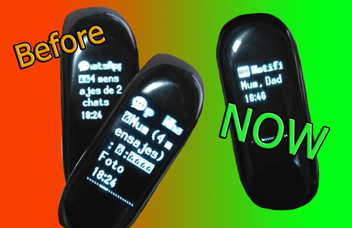 Get rid of long and repeated notifications on your band wich are non-readable, this app will exploit the tiny amount of characters admited in your device to show who talked to you!