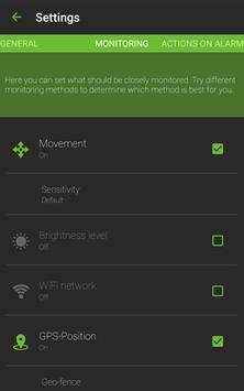 Hide your Smartphone in your car or motorcycle and enable the monitoring of the movement.