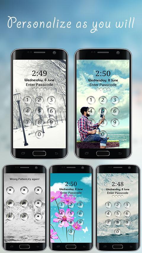 lock to enhance security of your phone. Unlocking screen is not possible unless the right pin is entered. Access will be granted only when you enter right Pin from our beautiful keypad.