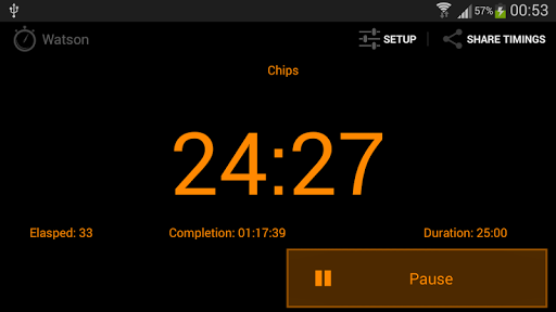 All timings are stored in a database, so you can exit the application, even reboot your phone or tablet, Watson will still be tracking when you start the app again. The application does not use a service, so there no battery drain when the application is not in view.