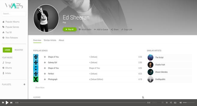 - Fully-featured player including shuffle, repeat, lyrics, queue, radio and more.
