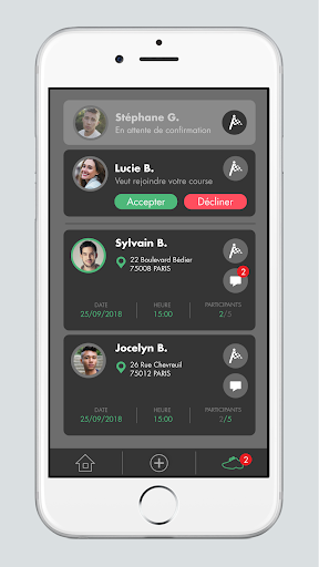 Bạn kiểm tra trong hồ sơ của bạn trong một phút. Bạn tạo cuộc đua của bạn. Bạn chấp nhận người chạy muốn tham gia cùng bạn, và đi!