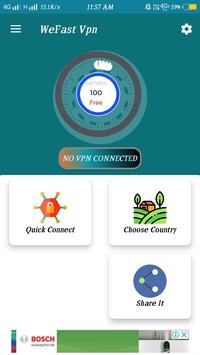 WeFast is a lightning-fast app provide free VPN proxy service. Not need any configuration, just simply click one button, you can access the Internet securely and anonymously.