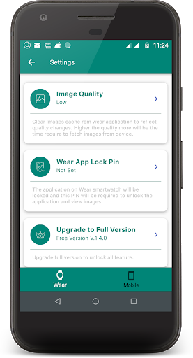 * Free User * -Allow to see all the images in low image Quality only. * Paid User * -Change image Quality type -Set or change Wear app pin -Share the image using Phone -Auto synchronization the images. -Rotate image in wear.