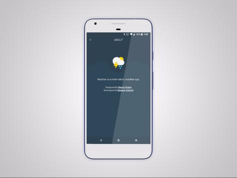 Weather is a minimalistic weather app designed by Eliezer Pujols and developed by Mukesh Solanki with only one intention that is to provide you with all the weather information you need with a neat and simple clean interface.