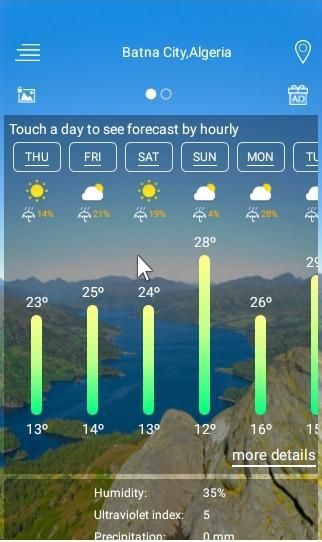 Live Weather Forecast & Alerts is a weather channel which has accurate weather information, forecasts weather daily & hourly. This accurate weather app allows to find out a detailed forecast wherever you are, for any time of the day or for the next 10 days.