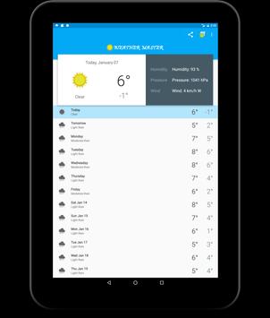 Weather Master app is a simple Android app, that helps user to monitor weather. App automatically synchronizes weather data after certain time interval and gives weather forecast for the next 14 days. Including High / Low temperatures, humidity levels, wind speed and atmospheric pressure. You can share weather information to your near ones using available mailing apps or messaging apps. It also has the support of Android Wear. You can set wear watch-face and get updates from your app to wearable device.