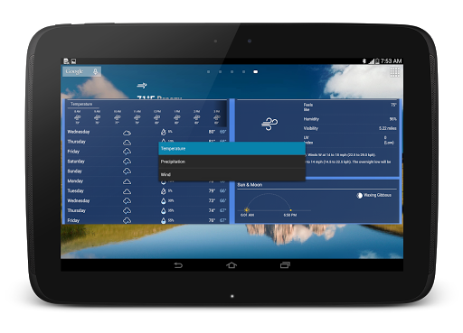 You can check the temperature, precipitation forecast, wind or simply keep up with the current phases of the sun and moon. It's simple design makes getting your weather info very easy. Powered by yahoo weather, Weather Now never lets bad weather ruin your plans!