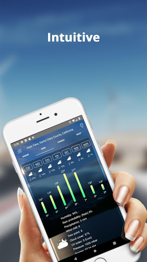 Daily weather, hours: you can check the weather by day, hour right on the radar or under the details table, and the weather for 7 consecutive days