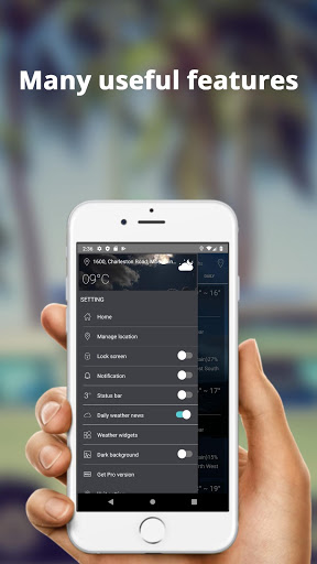 This professional weather app is packed with various weather themes and temperature clock widgets to decorate your main screen. In addition, the weather widget for this android also displays radar information such as accurate external temperature, forecast, sunrise time and sunset time, humidity, air pressure, waves, UV and cloud information.