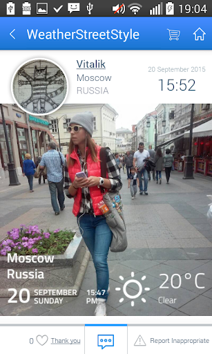On WeatherStreetStyle people capture everything around them and share it worldwide. Photos can be seen in a few seconds. This is a real magic window, from which you can see any city in the world!