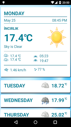 This application reads your GPS information and gives you excellent weather information.