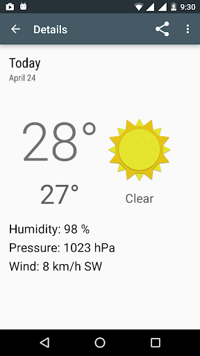 - Ability to share the weather forecast with your friends and family via your own messaging / email apps.
