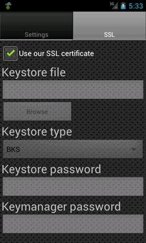 - Secure the connection with SSL (TLS) and use our built in certificate or use your own certificate (BKS and PKCS12 supported)