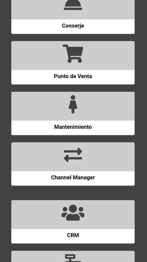 Tenemos 4 módulos principales: Conserje, Punto de Venta, Ama de llaves (mucamas), y el sistema General de Gestion; que posee acceso al sistema completo incluyendo el módulo de Contabilidad y Reportes.
