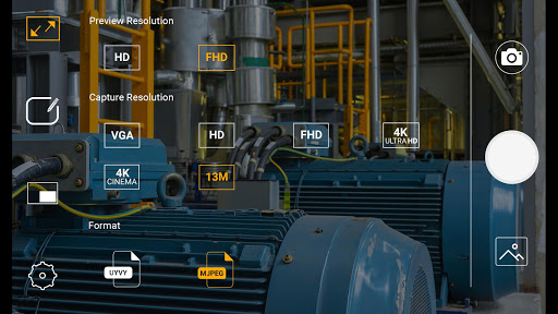 • With PIP you could capture stills or record videos from 2 cameras (one the connected USB camera and the other your device's front/rear camera). The output from your front/rear camera's location could be changed to any of the 4 corners.