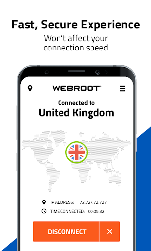 Webroot® WiFi Security is a VPN that gives you security and privacy while you work, share, bank, and browse online. But Webroot WiFi Security is different from a traditional VPN. It adds a layer of protection for your valuable information, but isn’t demanding or difficult to set up. It just takes a single tap or click to activate all your protection features, so you know your connection is secure, anonymous, and most importantly, private.