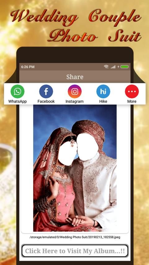 Wedding Couple Photo Suit and get a virtual wardrobe that complements your individual style. If you fascinating to each day life vogue and picture suit, Wedding Couple Photo Suit camera app offer facility to offline camera result and largest frames for you.
