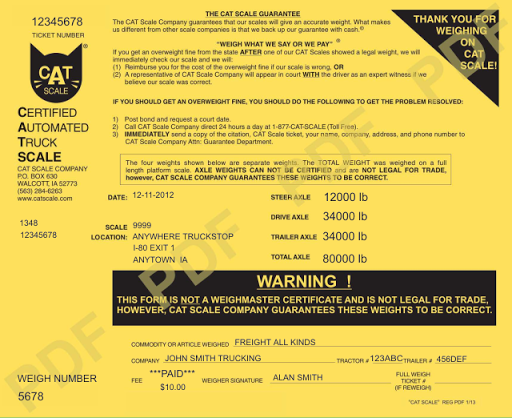 If the driver does need a hard copy scale ticket for billing purposes, they can still pick up a printed CAT Scale ticket at the fuel desk within an hour after weighing using the Weigh My Truck™ application.
