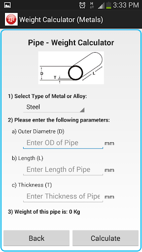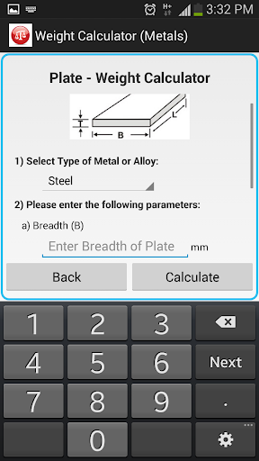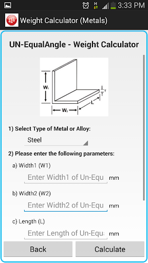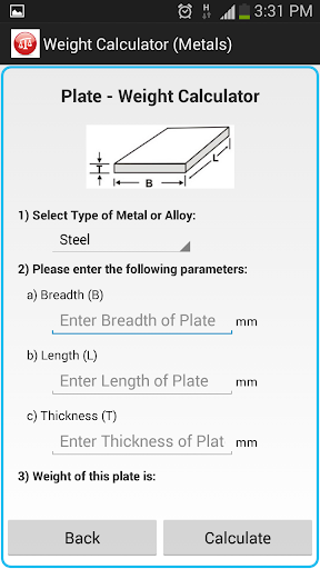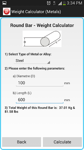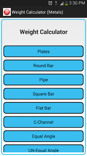 Weight Calculator is a very simple, straightforward, elegant & extremely handy tool. It does not do anything extraordinary or out of this world things....it's just a Metal (Plate, Round Bar, C-channel, Pipe, Unequal channel etc) Weight Calculator that will come in handy when you need it most and it will do its job as required. No fancy or complicated UI(User Interface), just simple and easy to use UI. Users will be surprised how simple it is to use and it really performs to its name. It instantly turns your phone into a useful tool when you need it the most.