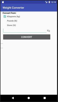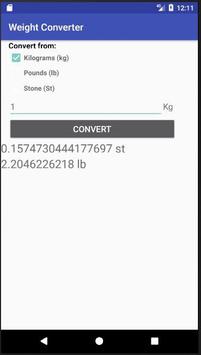 A simple and easy to use weight converter which allows you to switch between kilograms, stones and pounds with ease.