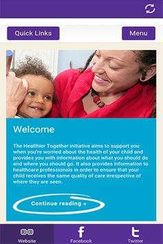 The Healthier Together initiative aims to support you when you’re worried about the health of your child and provides you with information about what you should do and where you should go.