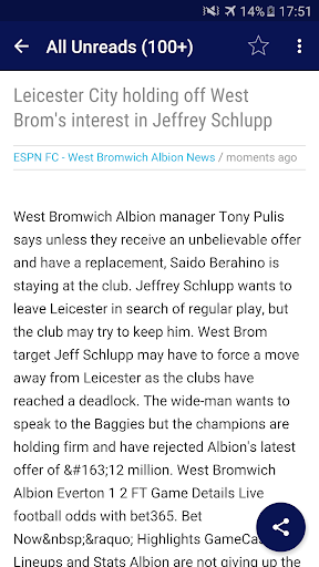 All the news, transfers, rumours, trades & videos about West Bromwich Albion FC in a single app. We cover all main football sources and bring you a clean & an effective summary to follow the club you love!