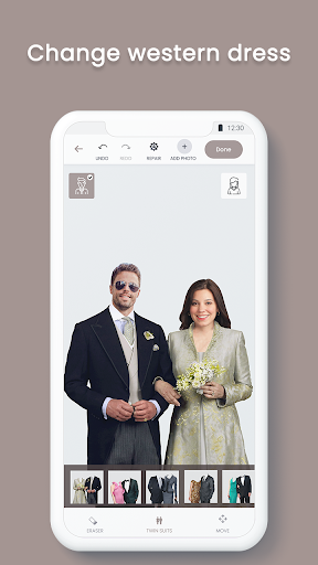 Western Dress Couple Photo Suit is free to install and use Android application that has an inbuilt photo editor and background changer tools to facilitate the users with the best user experience while dealing with Western dress Couple photo suit photo montages.