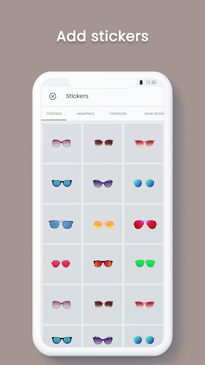 11) Add stickers from the sticker section of the app. The sticker section presents a wide range of stickers ranging from women watches, women sunglasses, women hats, women bracelets, women airings, women necklace, men watches, men sunglasses, men accessories, etc.