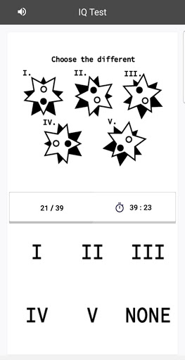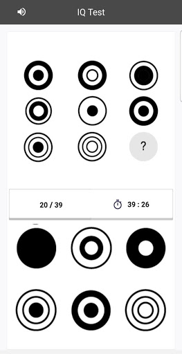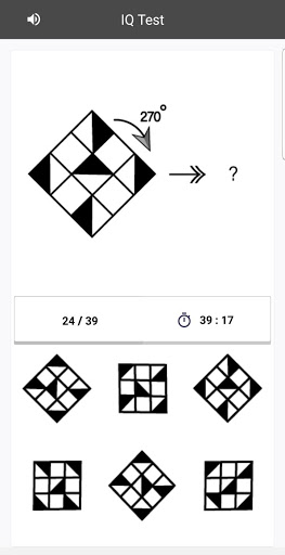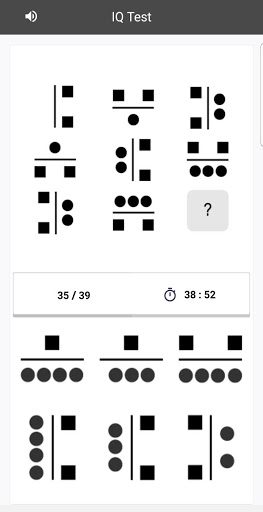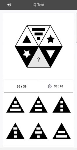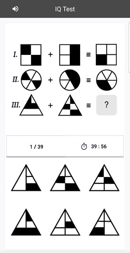 The IQ Test comprises of 39 questions which in turn are gradually more complex. Respondents choose geometric shapes to properly complete larger images.