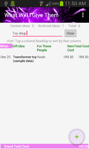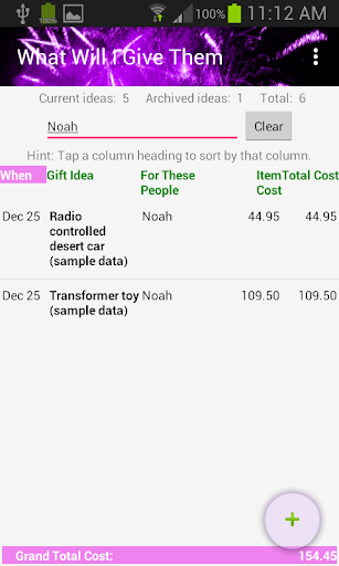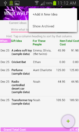 Since you can record the price of each gift idea, the app will show you how much money you are going to be spending, so you can watch your budget.