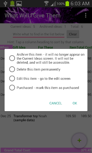 You can also add past gifts into the app, so if you can remember what you gave someone last Christmas, you can add it into the app as an "archived" idea so that you have a history of what you have given the person.