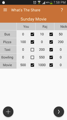 -You can easily select who participated in a given event. Share is calculated only for the participants.