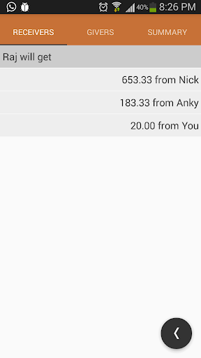 -With one tap, find out who owes who and how much. Also get a brief summary of all the expenses.