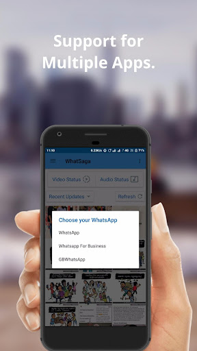WhatSaga helps you see all the recent statuses and Save and Share them