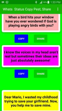 Welcome to Best status application for your social media applications. Whats Status Copy Paste for WhatsApp app let you text of new status feature of WhAtsapp account also it allows to Copy Paste share right from app to your friends.