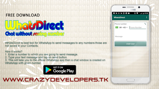 Note - This app or app developer is not associated with WhatsApp. WhatsApp is a registered trademark of WhatsApp Inc. You should follow WhatsApp's terms & condition while sending messages through WhatsDirect App.