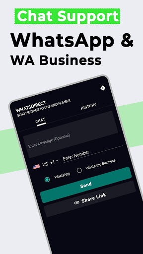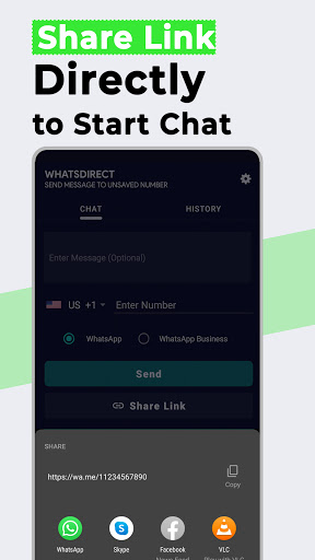 WhatsDirect is a useful utility to WhatsApp directly without saving unknown numbers. Direct message supports mobile number entering as well as copy paste from call logs facility to enter mobile number.