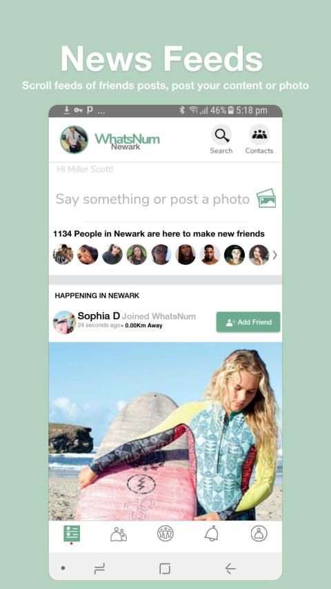 WhatsNum users can post new photos and updates on timeline and it get seen by all WhatsNum users in the city, discover new friends