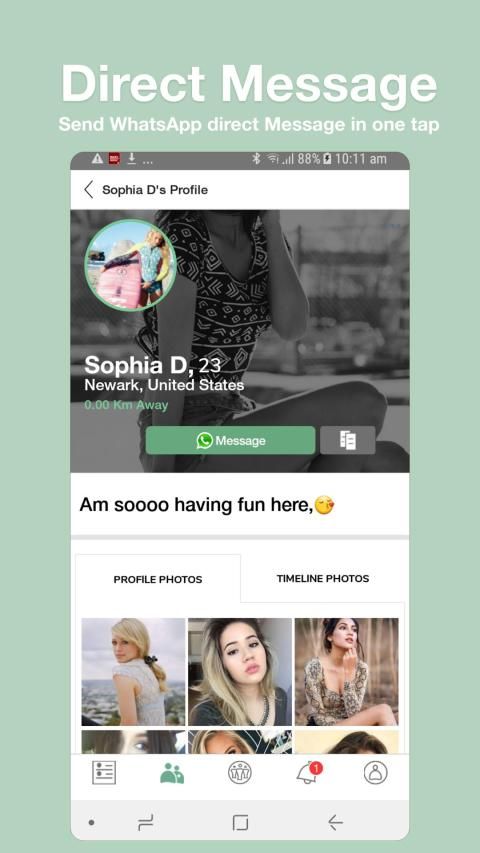 ⇒ Get New WhatsApp contacts to chat with, Send DM to other users and see people posting in your area.