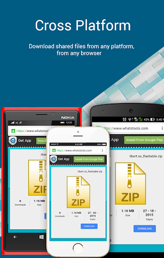 ☆ Share to Anywhere: File sharing is not limited to SMS or IM's. You can copy the download link and share it anywhere through SMS, Email or Social Media Platforms. Anyone with the link can download the file from any platform using a browser.