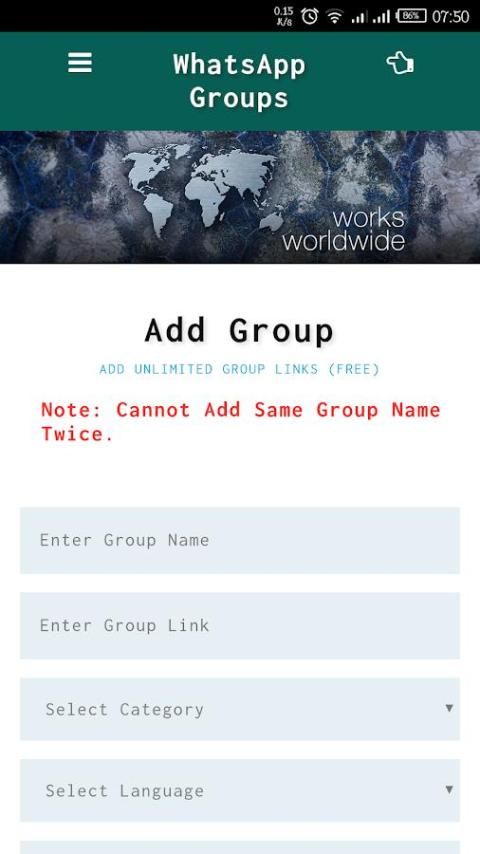 Add Unlimited Whatsapp Public Group Free, Fast. Target your audience over 300+ countries with your favourite categories and over 13+ languages, Let your audience reach you and you also get to your audience what else could be better install now and get your long time searched enertainment, blog news, Business, Technology, Freelancer, Developers, Social, Fan Club, Style, Photography, Lifestyle and lots more