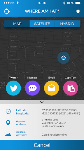 -Quickly share your location on Twitter, by email, or through text/iMessage right from within the app