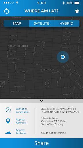 -Your location is displayed automatically as soon as you open the Where Am I At app.