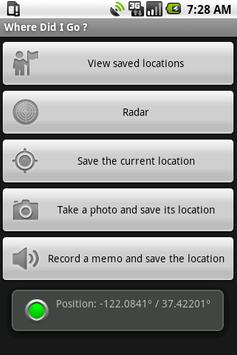 Where Did I Go helps you easily remember your favourite places (parking, home, friend, point of view, ...).