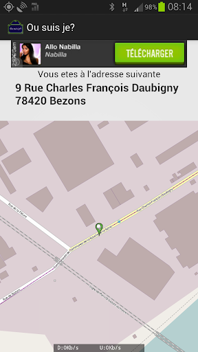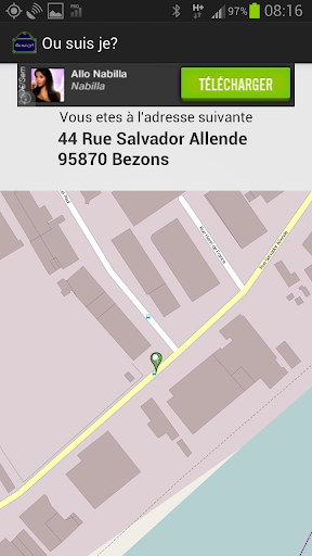 This application allows you to see where you are on a map but it shows you also the real address where you are.